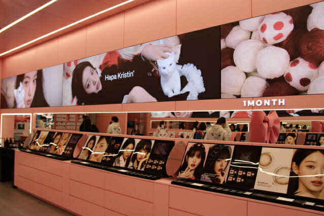 장원영 렌즈로 주목받는 이 브랜드의 오프라인 매장은 제품을 진열해 판매하는 공간을 넘어,디자인과 체험을 통해 브랜드 세계관을 경험하도록 설계된 것이 특징이다.투톤·다층 레이어로 구현한 디자인 차별화부터 전시형 매장 구성,참여형 체험 요소까지 더해지며 하파크리스틴은 컬러렌즈를 하나의 라이프스타일 아이템으로 재정의하고 있다.