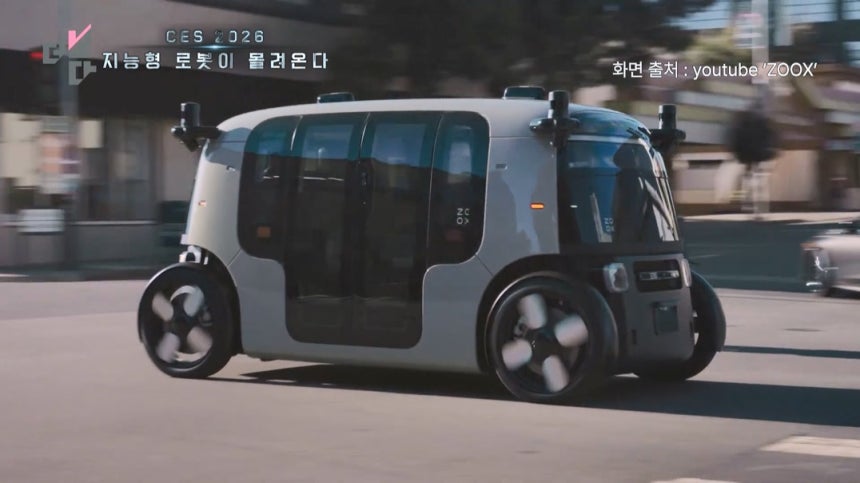 도심을 달리는 상자 모양의 네모난 차량,아마존의 로보택시 ZOOX입니다.