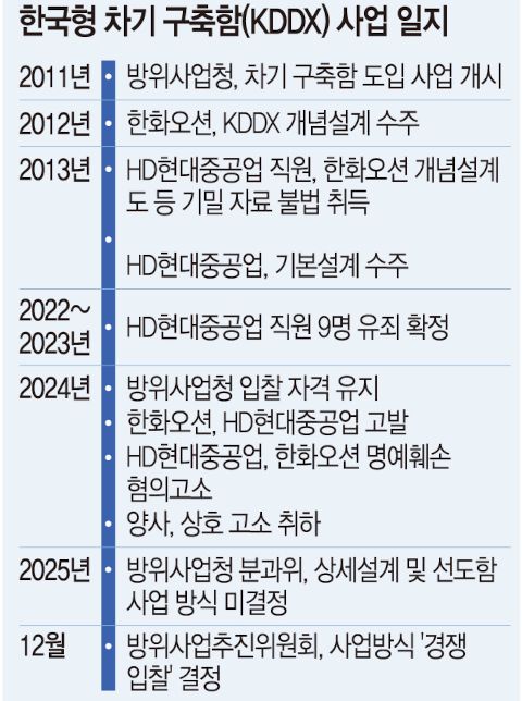 이로써 사업자 선정 방식을 둘러싼 혼란은 일단락되는 분위기다.애초 방사청은 기본설계를 진행한 기업이 맡는 수의계약 방식이 효율적이라고 보는 분위기였다.하지만 HD현대중공업 직원의 기밀 유출 사건이 불거지면서 상황이 복잡해졌다.여기에 이재명 대통령이 지난 5일 “군사기밀을 빼돌려서 처벌받은 데에 수의계약을 주느니 이상한 소리가 나온다”고 언급한 이후 경쟁입찰이나 공동개발 방식에 힘이 실리게 됐다.