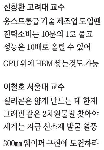 한 자릿수 나노 크기 공정에 도달하면서 반도체 산업의 패러다임은 이제 나노를 넘어 새로운 단위로 진입하고 있다.바로 '옹스트롬(Å) 시대'다.1옹스트롬은 0.1㎚로,원자 크기에 가까운 초미세 단위다.하지만 옹스트롬급 반도체 기술로 넘어가기 위해서는 기존 소자와 소재의 물리적 한계를 뛰어넘는 혁신이 요구된다.신창환 고려대 전기전자공학부 교수,이철호 서울대 전기정보공학부 교수를 만나 옹스트롬급 반도체 기술이란 무엇이며,현재 산업은 어떤 기술적 난관에 직면해 있는지 들어봤다.