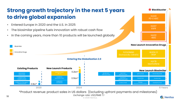 헨리우스는 이르면 2028년 HLX22의 해외 출시가 가능할 것으로 전망하고 있다.매출 목표치는 100억달러(14조6400억원)으로,여기에는 글로벌 위암 임상 3상과 HER2-저발현 유방암 임상 2상의 가치만 포함됐으며,HER2 양성 유방암 임상 개시에 따른 가치가 포함되지 않았다.