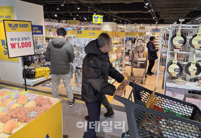이마트가 다이소식 균일가 전략을 앞세워 오프라인 집객에 나섰다.와우샵은 이마트가 매장 내에 조성한 초저가 생활용품 편집존으로,1000원부터 5000원까지 5단계 균일가로 1340여개 상품을 구성한 것이 특징이다.전체 상품의 64%는 2000원 이하,86%는 3000원 이하로 가격대를 맞췄다.모든 상품은 해외에서 직접 들여와 중간 유통 단계를 줄였다는 게 이마트 측 설명이다.
