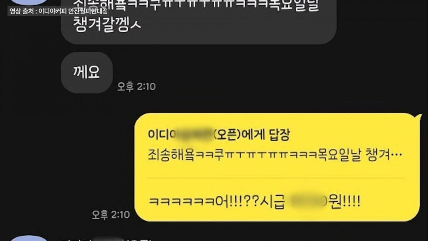 “두 번째로는 (손님에게)‘죄송합니다’금지 매장이에요.사회에 나가면 내 잘못이 아닌데 죄송하다고 해야 되는 일들이 너무 많잖아요.여기에서만큼은 하지 마라‘죄송합니다’하면 시급 100원 차감이야”