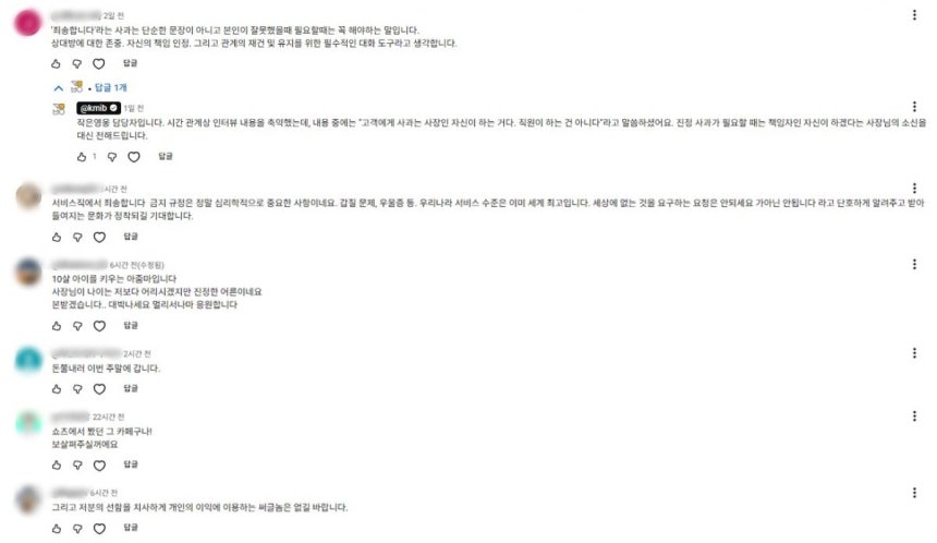 사연이 알려지면서 많은 사람들이 응원을 보냈습니다.그런데 일각에선 잘못한 게 있으면 사과를 하는 게 당연한 게 아니냐고 되물었죠.그에 대해 사장님의 인터뷰 중 다 전하지 못했던 내용을 대댓글로 공개했습니다.