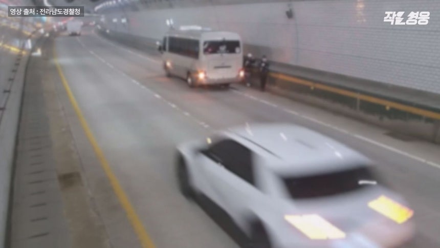 지난 9월 29일 오후 7시쯤.전남 장성 못재터널 장성읍 방면 2차로에서 통근버스 한 대가 고장으로 멈춰섰다는 112 신고를 받은 경찰들.하지만 단순한 차량 고장이 아니었습니다.