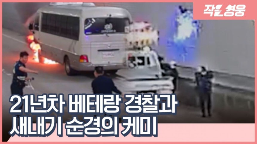 “순찰차에서 소화기를 꺼내가지고 진화를 시도했는데 엔진에서 불이 붙은 거라 전혀 소화기로는 감당이 안 되는 상황이었어요.시보 순경 구가은 순경이 터널 안에 소화전으로 불을 끄면 좋겠다고 아이디어를 내줬고.”