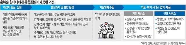 한씨는 “동년배로 보이는 요양보호사와 함께 밥도 먹고 이야기도 나누다 보니 빨리 회복할 수 있었다”고 말했다.이날 한씨에겐 말동무를 대신할 수 있도록 인공지능(AI)을 활용한‘안부확인서비스’가 추가로 연계됐다.