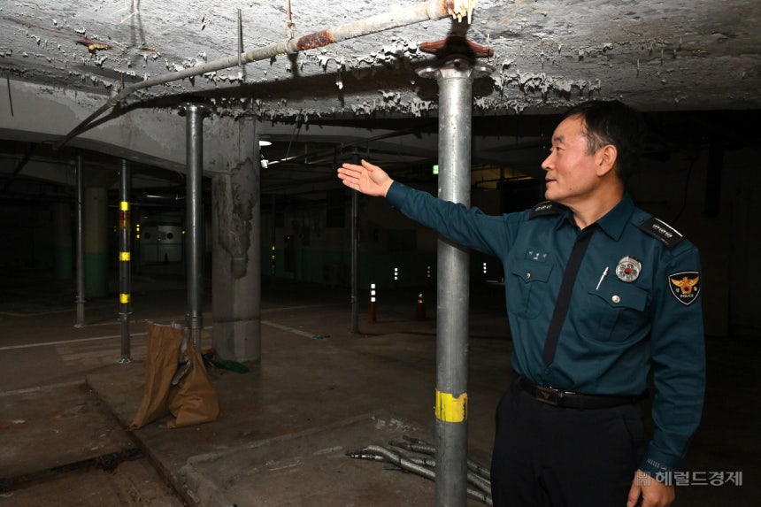 현재의 성동서 청사는 1986년 지어졌다.건물 곳곳도 세월의 흐름을 이기지 못하고 낡아가고 있다.지하 주차장은 안전 진단에서 탈락해 현재 아예 폐쇄 상태다.천장을 받칠 수 있도록 설치된 철근 기둥 130여개로 버티는 위험한 처지다.신축 청사가 필요하다는 공감대는 형성됐는데,구체적인 계획은 말만 무성하다.