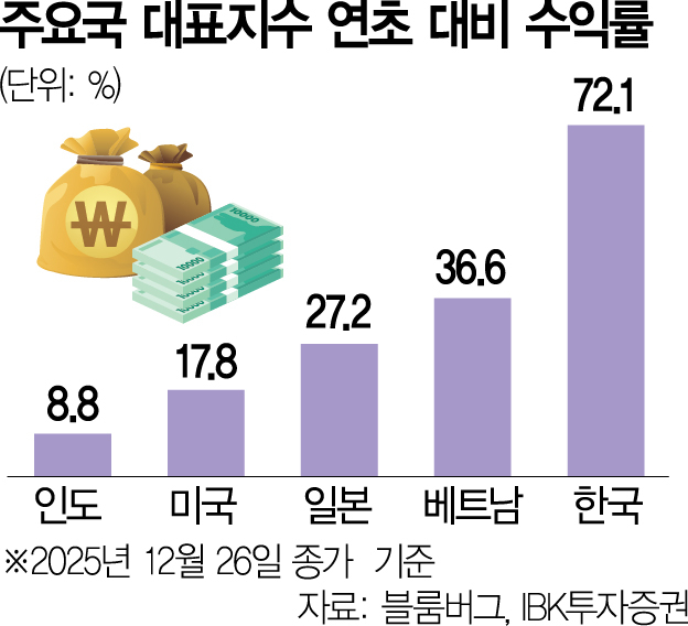 이에 올 10월 인도의 무역 적자는 416억 달러(약 60조 원)로 사상 최대 수준을 기록했고 루피화 약세가 심화해 외국인 투자자들의 자금 이탈로 이어졌다.여기에 정보기술(IT) 비중이 낮고 금융·자유소비재 비중이 높은 인도 산업 구조 특성상 인공지능(AI) 모멘텀 주도의 글로벌 랠리 훈풍도 비껴갔다.