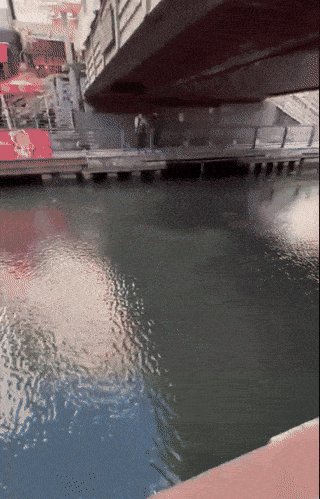 24일 요미우리TV 등 현지 매체에 따르면 지난 18일 오사카 도톤보리강에서 정체를 알 수 없는 물고기가 수면을 가득 채울 정도로 큰 무리를 만들어 헤엄치는 광경이 여러 사람들에게 목격됐다.