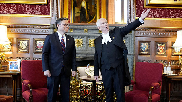 존슨 의장의 영국 방문은 올해 미국의 독립 250주년을 기념해 오래전 예정됐지만 양국 관계가 다소 어색해진 가운데 이뤄졌습니다.