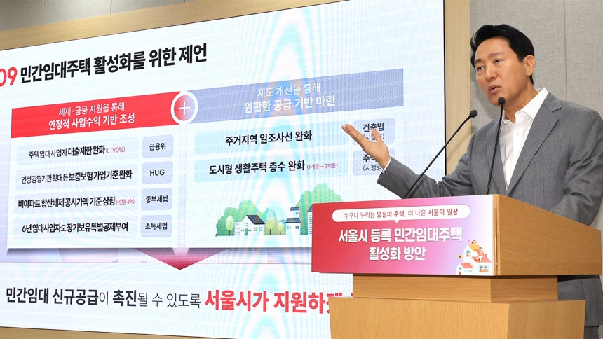 이 자리에서 오 시장은 "민간임대사업자 규제 강화는 거주 안정성이 높은 민간임대주택 공급 감소로 이어져 전월세 서민 주거 불안을 높이고,비아파트 공급물량이 감소하는 심각한 부작용을 초래하고 있다"고 지적했습니다.