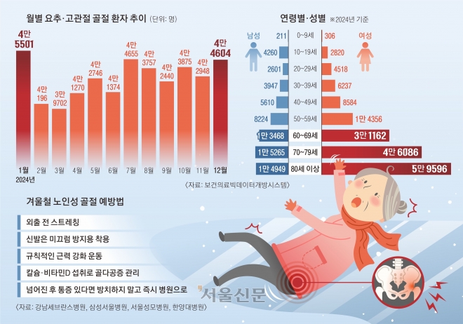 겨울철 치명적인 노인 낙상 사고12~1월 골반·요추 골절 환자 급증