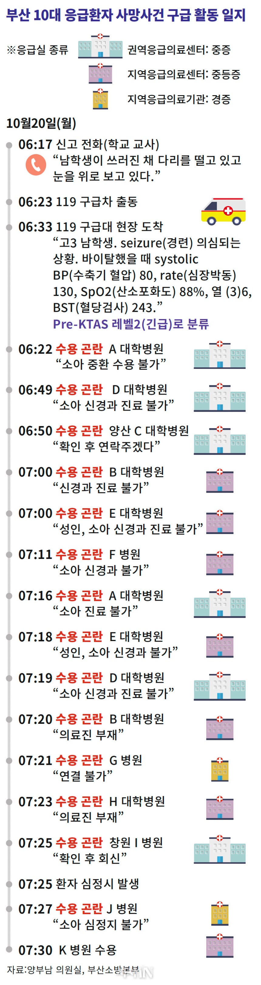 11월5일 국회에서 전국공무원노동조합 소방본부 조합원들이‘응급실 뺑뺑이’해결을 촉구하고 있다.©연합뉴스 부산은 한국에서 두 번째로 큰 대도시인데 지금 말한 신경과,소아 신경과,신경외과 같은 배후 진료과 의사가 그렇게 부족한가?