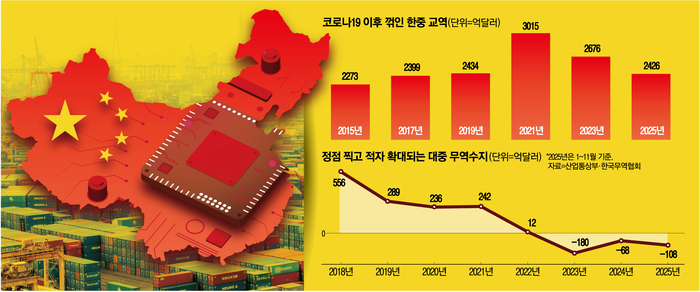 그러나 2022년 10월 미국이 대중 반도체 수출통제를 발표한 뒤 한중 무역 구조는 바뀌기 시작했다.다음 해인 2023년부터 대중 수출이 급감하면서 무역수지가 적자로 돌아섰다.이후 미국은 반도체뿐만 아니라 인공지능(AI) 등으로 공세 범위를 확장했다.