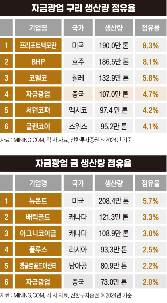 자금광업은 중국 1위이며 글로벌 메이저 금·구리 광산 기업이다.전 세계 15개국 이상에서 광산개발과 제련 사업을 영위하고 있다.매출 비중은 제련 61%,광산개발 37%이다.2025년 3분기 기준 광산 금 이익 비중은 46%,와이즈토토 승무패 계산기광산 구리는 36%를 기록해 이익률은 광산개발 부문이 월등히 높다.